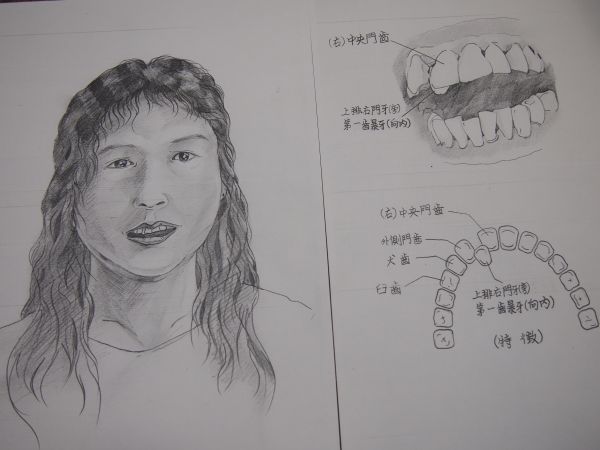 死者最明顯的特征是門(mén)牙右邊第1顆牙齒往內(nèi)生長(zhǎng),乍看很像缺1顆門(mén)牙,有穿耳洞,身高約155公分,應(yīng)該是一名中年婦女。警方公布畫(huà)像,希望供民眾指認(rèn)。(中國(guó)臺(tái)灣網(wǎng) 周劍)