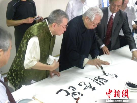 在雅集筆會上,臺灣著名畫家歐豪年揮墨潑毫。 黃瑩 攝