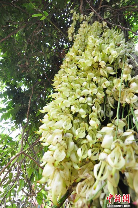 每年的三四月份,東莞清溪鎮大王山漫山遍野的禾雀花就會競相開放,一串串酷似禾雀的花朵迎風搖曳,極具有觀賞性。 李獲 攝