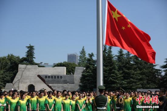 7月29日,來自港澳臺和內地的兩岸四地1200名青年走進侵華日軍南京大屠殺遇難同胞紀念館,吊唁南京大屠殺死難者。 中新社發 泱波 攝