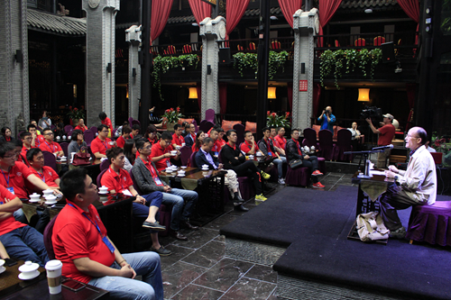 研習(xí)營一行首先參觀了武侯祠與錦里。在武侯祠,來自四川大學(xué)歷史文化學(xué)院的著名三國歷史文化專家方北辰為營員們上了一堂特殊的“商業(yè)課”。方教授以《諸葛亮出山之謎》為題,從商業(yè)運作、人才培養(yǎng)等角度重新解讀了“劉備三請諸葛亮”這一大家耳熟能詳?shù)臍v史故事,給營員們帶來了不一樣的三國文化體驗。方教授講完后,意猶未盡的營員們踴躍提問,與方教授熱情互動,現(xiàn)場掌聲、歡笑聲絡(luò)繹不絕。
