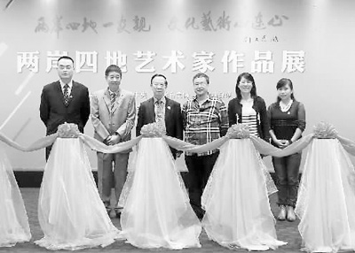 由臺盟中央與港澳臺美協(xié)、北京市臺聯(lián)共同主辦的“兩岸四地藝術家作品展示周”9月29日在北京臺灣會館開幕,展出了劉大為、覃志剛、李沃源、徐嘉煬等名家的近90幅書畫精品和40多件雕塑作品。圖為剪彩儀式。