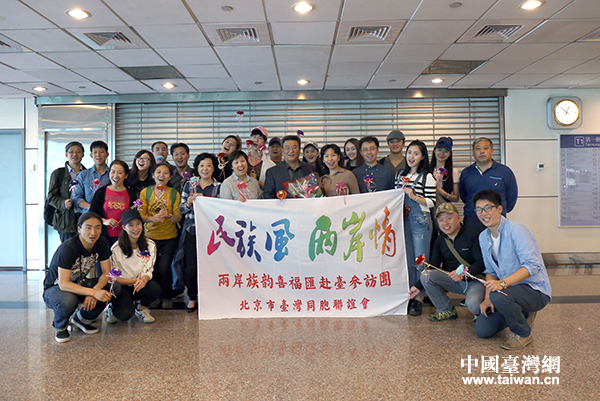 2015年“兩岸族韻喜福匯暨兩岸一家親快樂·豐年祭”交流參訪團一行抵達臺北桃園機場,正式開啟為期一周的兩岸少數民族文化交流行程。(中國臺灣網普燕攝)