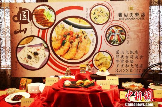 中新網上海3月23日電(葛鳳章 潘索菲)臺北圓山大飯店的大廚王泉益師傅和他的團隊23日客座上海王寶和大酒店,開啟為期5天的臺灣美食節。