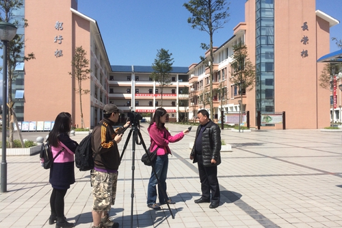 臺灣記者在臺灣同胞援建項目嚴道第一初級中學采訪。