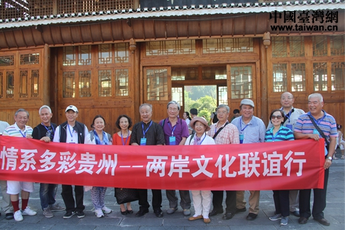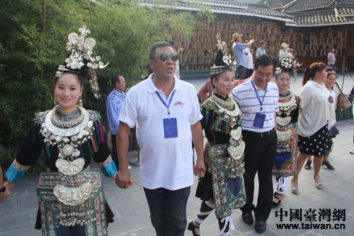 臺灣嘉賓們在肇興侗寨合影留念(中國臺灣網(wǎng) 蕪同 攝)