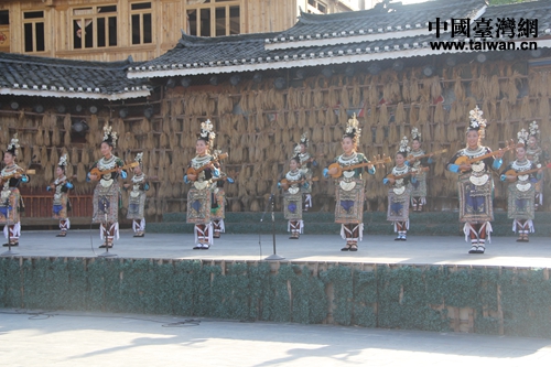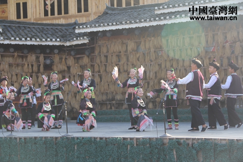 之后,侗族姑娘小伙們又表演了被稱為侗族大歌中美聲唱法的洪州琵琶歌《丟久不見單相思》、蘆笙舞《快樂的侗家人》等。讓臺灣嘉賓中的藝術家們過足了癮。