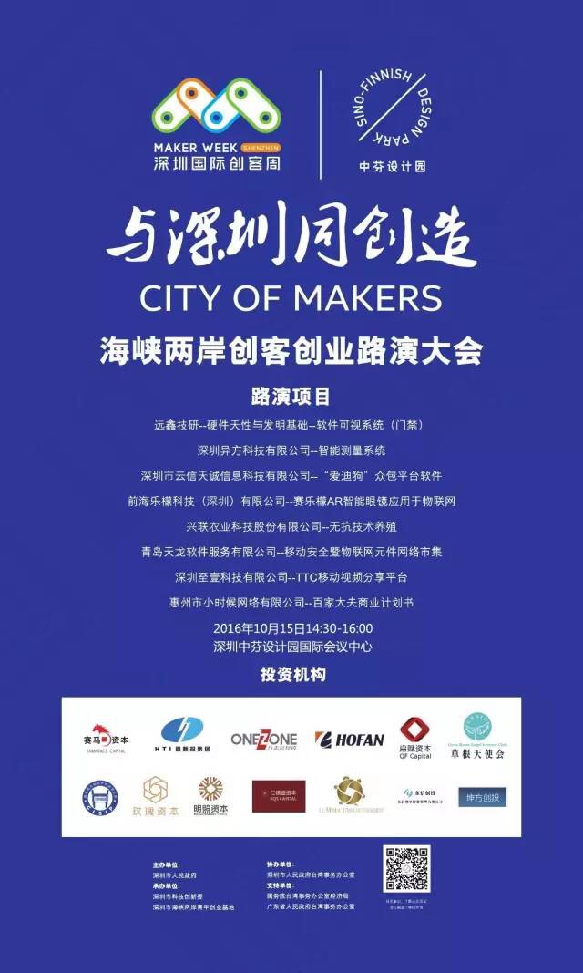 10.14 15:00-15:30第二屆深圳國際創(chuàng)客周海峽兩岸青年創(chuàng)業(yè)主題活動啟動儀式深圳中芬設(shè)計園