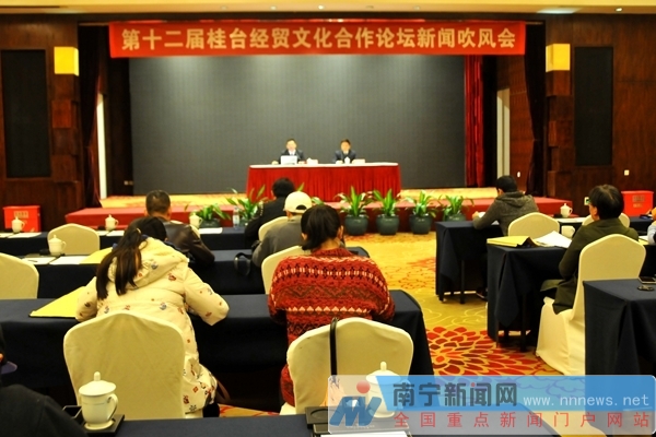第十二屆桂臺經貿文化合作論壇新聞通氣會現場。
