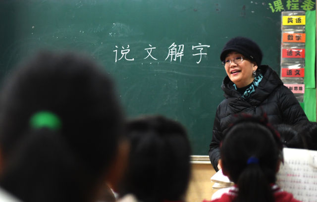 蕭永瑞為武漢外國語學校美加分校的學生們上國學課。(新華社記者程敏攝)
