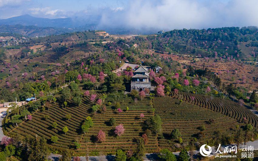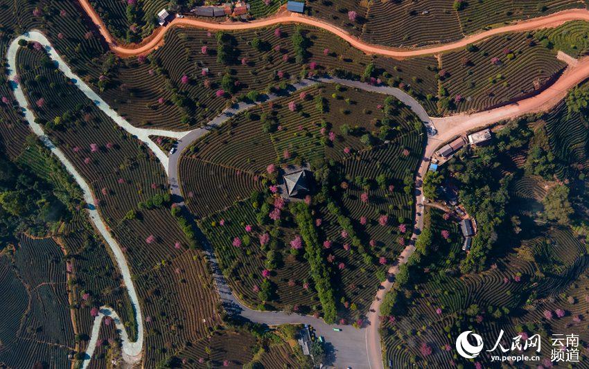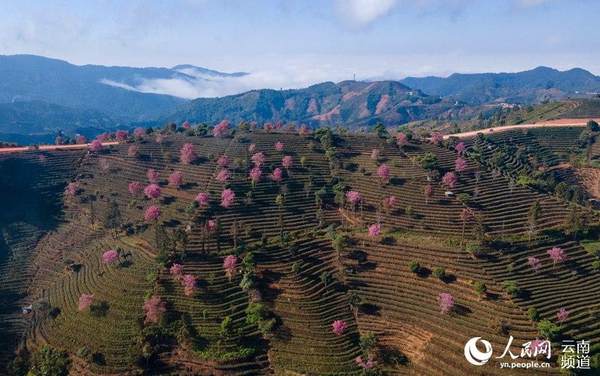 1月7日,普洱市思茅區(qū)萬畝生態(tài)茶園內(nèi)冬櫻花盛開。(人民網(wǎng) 虎遵會(huì) 攝)