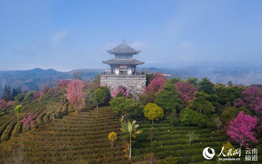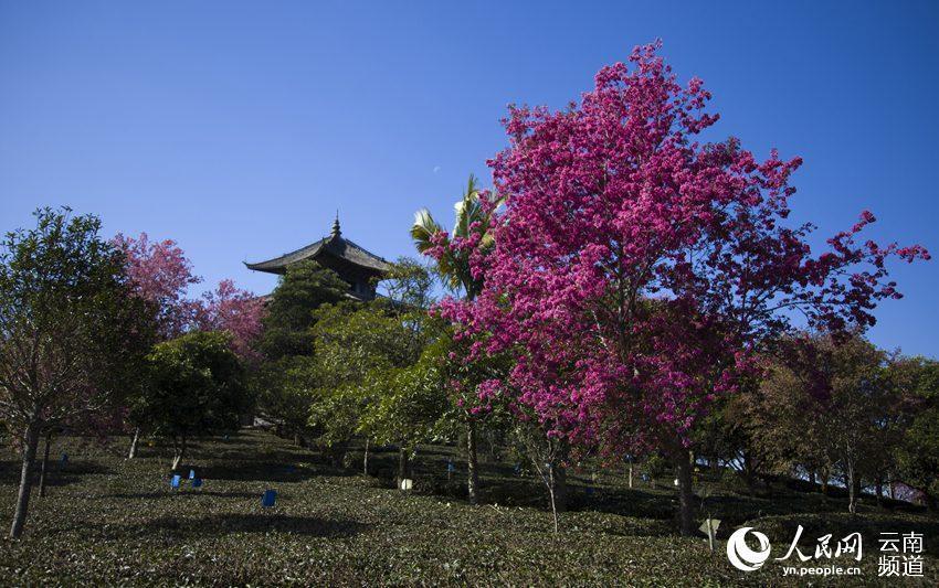 人民網(wǎng)普洱1月9日電(虎遵會(huì))近日,位于云南省普洱市思茅區(qū)的萬畝生態(tài)茶園內(nèi),近千棵冬櫻花迎風(fēng)綻放,姹紫嫣紅、美景如畫。(完)