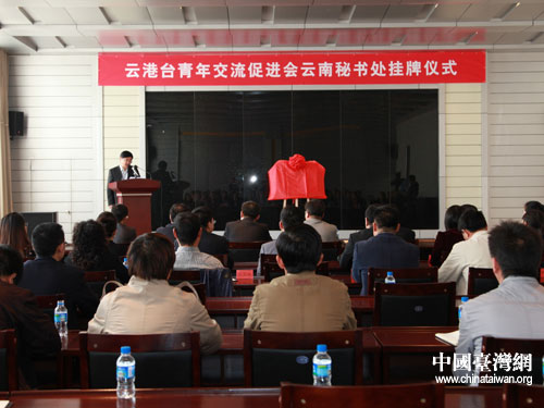 3月29日上午,云港臺(tái)青年交流促進(jìn)會(huì)云南秘書處在云南省臺(tái)辦掛牌成立。圖為掛牌儀式現(xiàn)場(chǎng)。(云南省臺(tái)辦李仁興 攝)