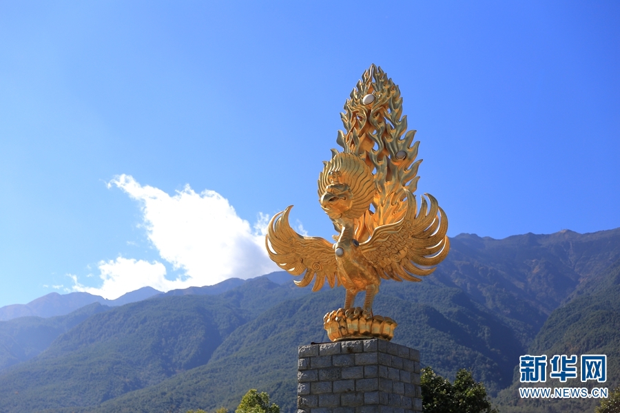 大理崇圣寺三塔前的金翅鳥。