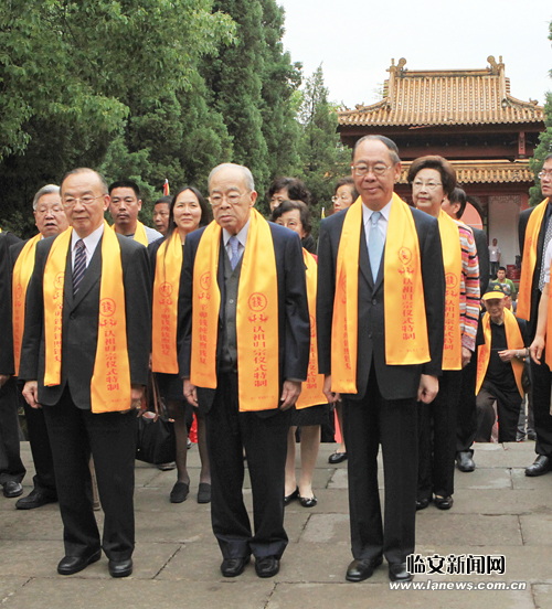 11日上午,錢镠第三十六世孫錢純、錢煦、錢復兄弟三人,帶領部分家屬來臨認祖歸宗,祭拜先祖武肅王錢镠。