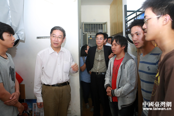 張志軍參觀浙大臺灣學生宿舍,并了解同學們的學習生活情況。(中國臺灣網 于斯文 攝)