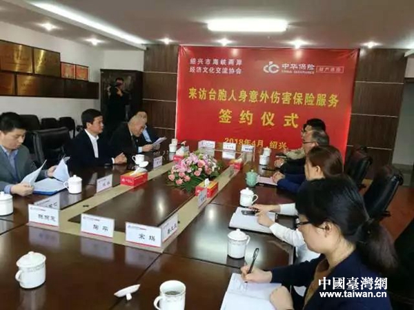 中國臺灣網4月23日紹興訊 為了進一步做好來訪臺胞的服務保障工作,4月17日,紹興市海峽兩岸經濟文化交流協會與中華保險紹興中心支公司舉行簽約儀式,由中華保險紹興中心支公司免費為500名應邀來紹興開展參觀、交流、實習等活動的臺灣同胞提供在紹期間人身意外傷害保險,人均金額為人民幣20萬元,累計保險金額人民幣1億元。