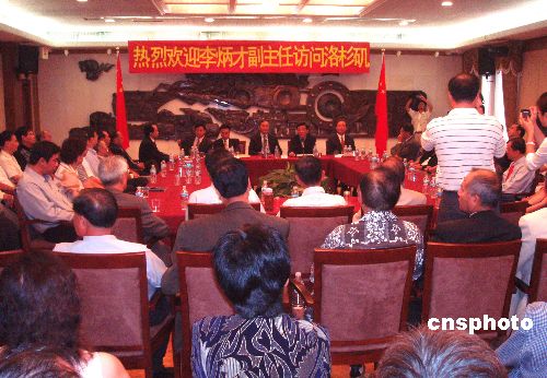 當(dāng)?shù)貢r(shí)間七月二十三日,海峽兩岸關(guān)系協(xié)會(huì)常務(wù)副會(huì)長(zhǎng)李炳才率領(lǐng)訪問(wèn)團(tuán)結(jié)束了對(duì)美國(guó)為期六天的訪問(wèn)。當(dāng)日訪問(wèn)團(tuán)一行和洛杉磯的僑領(lǐng)和旅美臺(tái)灣同胞的代表進(jìn)行座談,聽(tīng)取了有關(guān)發(fā)展兩岸關(guān)系的意見(jiàn)和建議,重點(diǎn)就胡錦濤總書(shū)記提出的構(gòu)建和平穩(wěn)定發(fā)展的兩岸關(guān)系進(jìn)行了闡述。 中新社發(fā) 賈國(guó)榮 攝