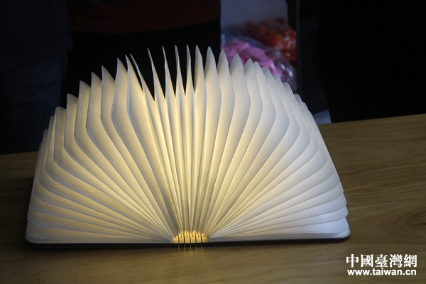 文創企業負責人展示的書本型夜燈。(中國臺灣網 汪明珠 攝)