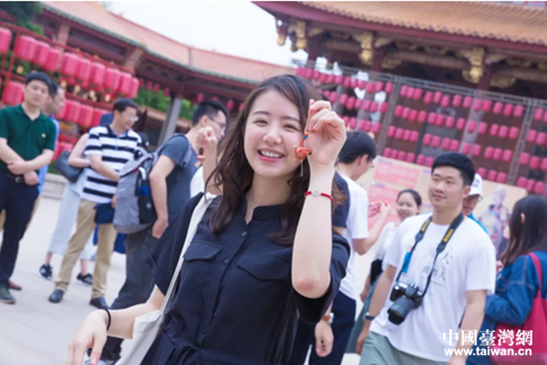 “畫檐慧聚寺,情絲憶臺灣”。此次活動中,學(xué)生們還參觀了由慧聚寺、慧聚文化廣場、兩岸(媽祖)文化交流中心、媽祖文化主題公園以及臺灣風(fēng)情街五大部分組成的匯聚廣場。學(xué)生藺嘉瑩感嘆:“這里實(shí)在是太親切了,鄉(xiāng)音、媽祖廟、還有各種具有臺灣特色的建筑,感覺像是回到了家一樣。在這里只瞧見了‘一家’沒瞧見‘兩岸’。”