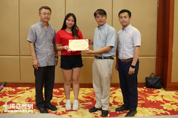座談會(huì)現(xiàn)場(chǎng)為臺(tái)灣青年頒發(fā)結(jié)業(yè)證書。(中國臺(tái)灣網(wǎng) 陳文韜 攝)