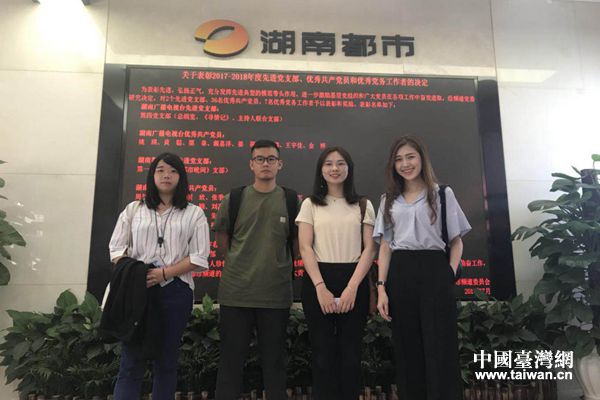 陳瑋珊和小組成員們一起來到都市頻道報到(圖片來源:湖南省臺辦)