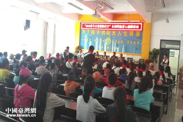 在德欽縣第二小學,參訪團開展捐資助學獻愛心活動。(圖片來源:云南省臺辦)