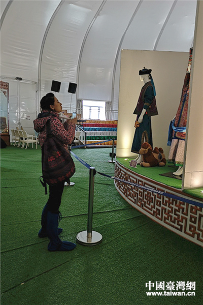 參訪中,魯凱人麥懿嘉對蒙古族服飾充滿興趣。(中國臺灣網 郜利敏 攝)