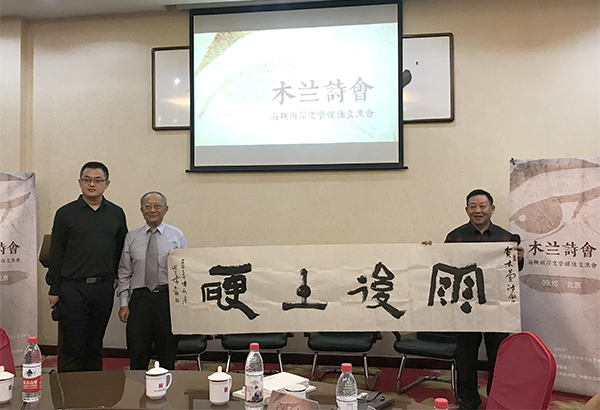 中國(guó)臺(tái)灣網(wǎng)9月15日北京訊 (記者 普燕) 由臺(tái)北市青溪新文藝協(xié)會(huì)發(fā)起,北京城市未來(lái)文化藝術(shù)中心主辦的木蘭詩(shī)會(huì)暨海峽兩岸文學(xué)媒體交流會(huì)15日在京啟動(dòng)。兩岸50余位詩(shī)人作家、學(xué)者教授齊聚,以詩(shī)會(huì)友,共同探討中國(guó)詩(shī)歌文學(xué)的創(chuàng)作與發(fā)展,增進(jìn)海峽兩岸文化界交流,共同促進(jìn)中華民族文學(xué)文化傳承和發(fā)揚(yáng)。