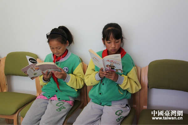 認真閱讀的貢嘎片區寄宿制學校學生。(圖片來源:四川省臺辦)