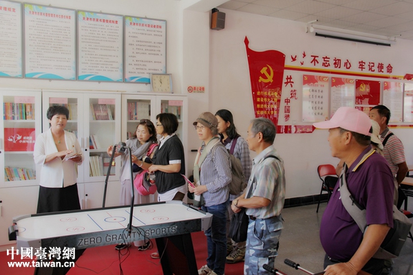 參訪團一行先來到了蘆臺鎮光明社區,實地參觀了社區一站式服務大廳、五愛教育陣地、活動室、榮譽室,詳細了解和諧社區建設與管理的工作方法。觀看了光明社區居委會精心準備的文藝節目,《阿里山的姑娘》《我愛你中國》《我們是一家人》將等歌舞曲目將現場氣氛帶到了高潮,兩岸同胞共同歌唱,一起舞蹈,與社區居民一起歡度這一美好時光。參訪團成員們對光明社區的管理運作模式表示稱贊,對社區豐富的群眾活動和優美的環境表示向往。