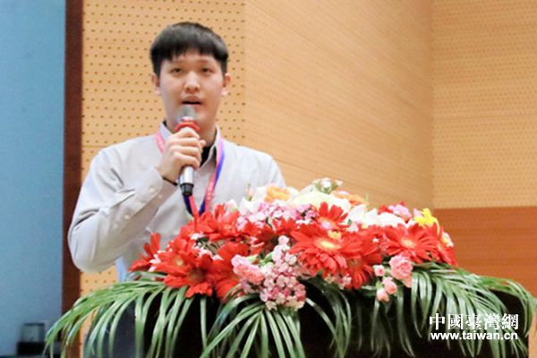 臺灣高校學生代表江鎮(zhèn)州發(fā)言。(圖片來源:浙江省臺辦)