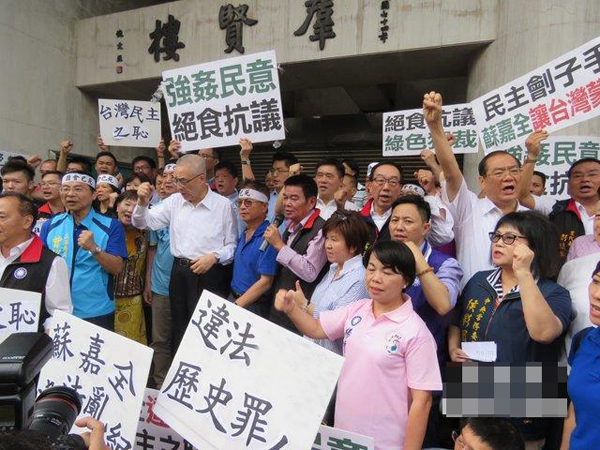 國民黨“立委”曾銘宗、費(fèi)鴻泰、賴士葆29日發(fā)起絕食,抗議民進(jìn)黨以霸道違法方式在“立法院”處理“前瞻基礎(chǔ)建設(shè)計劃第一期特別預(yù)算案”。吳敦義在中常會結(jié)束后率中常委及支持者近300人前往聲援。