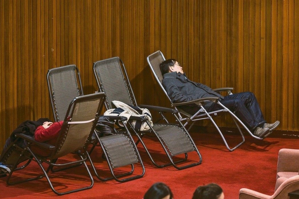 以此次“立法院”臨時(shí)會(huì)而言,在野黨為了對(duì)抗執(zhí)政黨的“人數(shù)暴力”,只能以不斷登記發(fā)言方式來(lái)拖延。負(fù)責(zé)當(dāng)舉手部隊(duì)的執(zhí)政黨“立委”,只要在表決時(shí)醒來(lái)按鈕就好,因此面對(duì)漫漫長(zhǎng)夜,睡成一團(tuán)也不太令人訝異。不過(guò)部分“立委”甚至嫌坐著睡不舒服,甚至把躺椅搬進(jìn)議場(chǎng)內(nèi)。