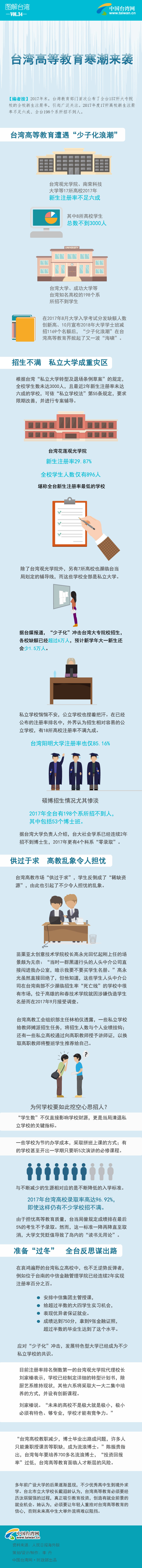 【編者按】2017年末,臺(tái)灣教育部門首次公布了全臺(tái)157所大專院校的全校新生注冊率,引起廣泛關(guān)注。2017年度17所高校新生注冊率不足六成、全臺(tái)198個(gè)系所招不到人。