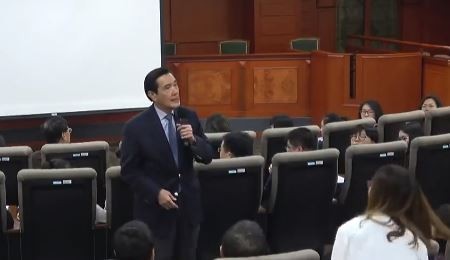 馬英九在東吳大學演講。(圖片取自臺媒)