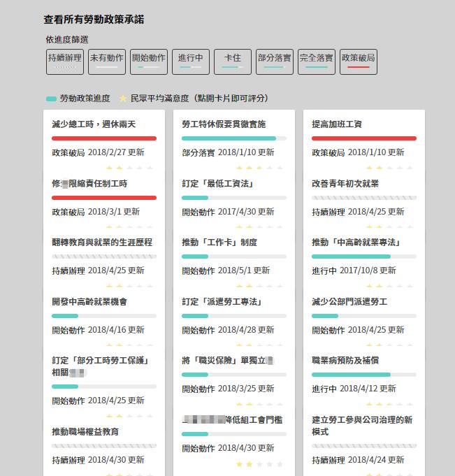 島內非營利網媒《報導者》為此特意制作了“蔡英文勞動政策追蹤大平臺”,結果顯示,截至勞動節當天,不僅“完全落實”的為0項,更有3項“政策破局”到已然跳票,而唯一“部分落實”的僅是“勞工特休假要貫徹實施”……