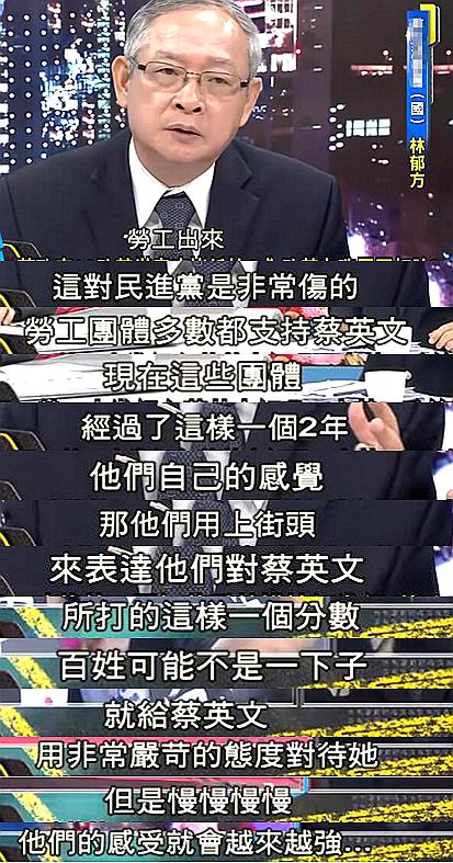 國民黨民代林郁方也表示,經過民進黨2年的執政,曾支持蔡英文的勞工團體經過切身感受后選擇上街抗議,“這對民進黨是非常傷的”。