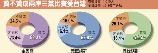 贊不贊成兩岸三黨比賽愛臺灣民調。(圖片來源:臺灣《中時電子報》)
