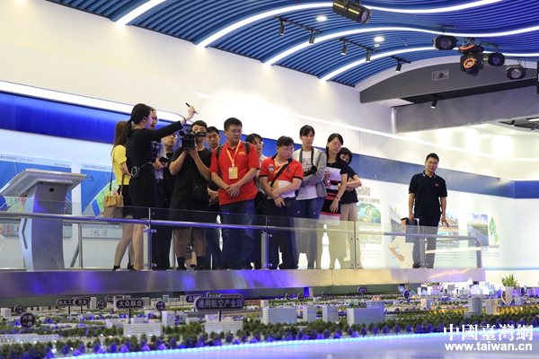 兩岸記者來(lái)到寧波杭州灣新區(qū)城市展覽館參觀。(中國(guó)臺(tái)灣網(wǎng) 李奕均 攝)