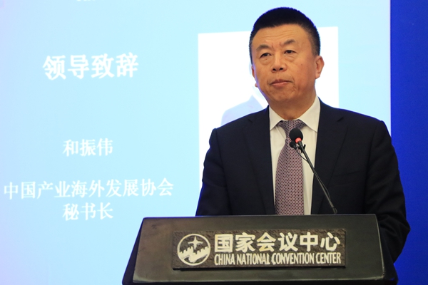 中國產(chǎn)業(yè)海外發(fā)展協(xié)會秘書長和振偉在發(fā)布會上發(fā)言。(中國臺灣網(wǎng) 孫伊靜 攝)