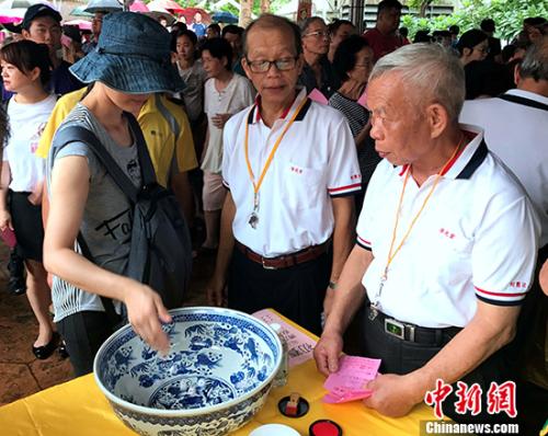 9月24日一早,一場中秋博餅比賽在臺北葫蘆堵海光宮前舉行,一張張木桌中間擺上大瓷碗,參與的人們相繼擲出骰子,期待“中狀元”。這一從福建傳入、于臺灣離島及中南部地區(qū)盛行的趣味競賽,據(jù)傳來自鄭成功當年收復(fù)臺灣后,部將為安撫福建一帶士兵思鄉(xiāng)之情,設(shè)立的一項中秋活動。