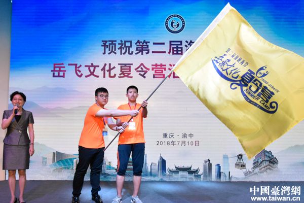 中國(guó)臺(tái)灣網(wǎng)7月13日重慶訊 為促進(jìn)兩岸青少年一同傳承岳飛愛(ài)國(guó)主義精神,認(rèn)識(shí)中華優(yōu)秀文化的魅力,7月10日,第二屆海峽兩岸岳飛文化夏令營(yíng)在重慶市文化宮舉行開(kāi)營(yíng)儀式。市臺(tái)辦主任胡奕向夏令營(yíng)學(xué)生代表授營(yíng)旗并宣布開(kāi)營(yíng),標(biāo)志著海峽兩岸師生正式開(kāi)啟了領(lǐng)略岳飛文化的暑期之旅。在開(kāi)營(yíng)儀式上,兩岸學(xué)子們觀看岳飛文化夏令營(yíng)主題宣傳片《共同記憶》,同臺(tái)演出精彩節(jié)目,感受岳飛文化思想,攜手傳承、發(fā)揚(yáng)中華民族優(yōu)秀文化,促進(jìn)了兩岸青少年心靈契合。