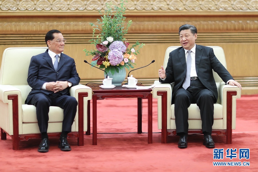 7月13日,中共中央總書記習近平在北京人民大會堂會見中國國民黨前主席連戰率領的臺灣各界人士參訪團。 新華社記者鞠鵬攝