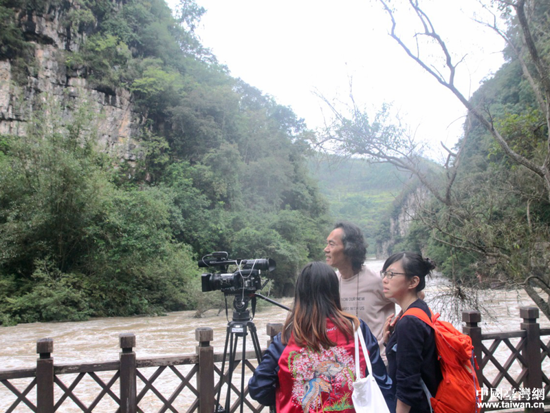臺灣中天電視臺采訪當地向導。(中國臺灣網 李航 攝)