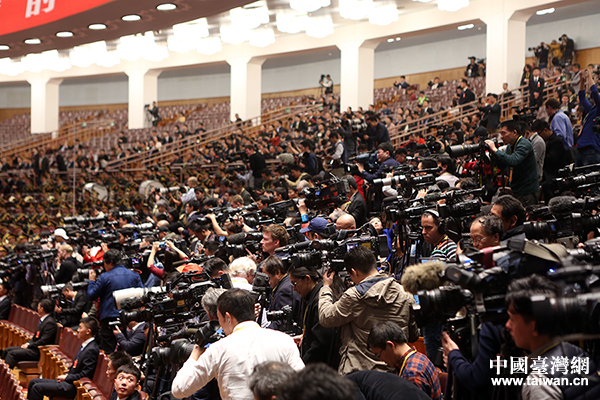 中外記者報道中國共產黨第十九次全國代表大會閉幕會。(中國臺灣網 于斯文 攝)