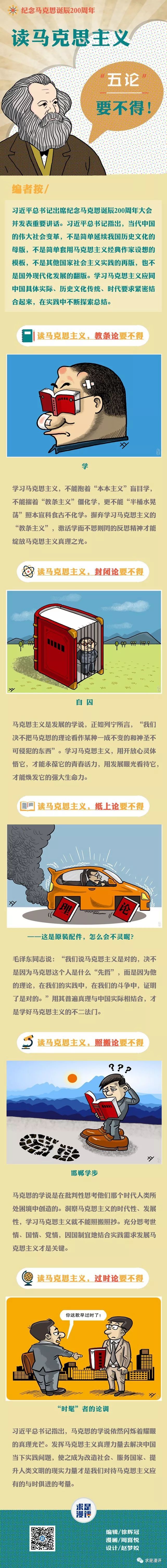 習(xí)近平總書記出席紀念馬克思誕辰200周年大會并發(fā)表重要講話。習(xí)近平總書記指出,當代中國的偉大社會變革,不是簡單延續(xù)我國歷史文化的母版,不是簡單套用馬克思主義經(jīng)典作家設(shè)想的模板,不是其他國家社會主義實踐的再版,也不是國外現(xiàn)代化發(fā)展的翻版。馬克思主義不是書齋里的學(xué)問,是在人民求解放的實踐中形成的,也是在人民求解放的實踐中豐富和發(fā)展的,學(xué)習(xí)馬克思主義應(yīng)同中國具體實際緊密結(jié)合起來,才能把藍圖變?yōu)槊篮矛F(xiàn)實。