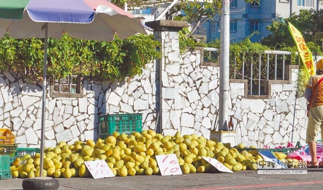 花蓮市出現(xiàn)一顆5元(新臺(tái)幣,下同)、12顆50元文旦柚的“流血價(jià)”。(圖片來(lái)源:臺(tái)灣《中時(shí)電子報(bào)》)