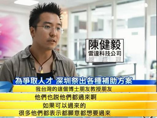 深圳臺商總會常務副會長黃厚生更直言,臺灣沒有好的資源自然不能支持年輕人,尤其是臺灣人才的發展。