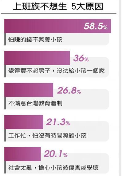 要知道臺灣是沒有“計劃生育”的,然而就在臺當局一直出臺措施鼓勵生育時,臺灣民眾依舊不愿意生孩子。根據2015年10月臺灣媒體披露的一組關于生育調查的數字顯示,高達87%的受訪者表示不會因生育補助而生小孩。